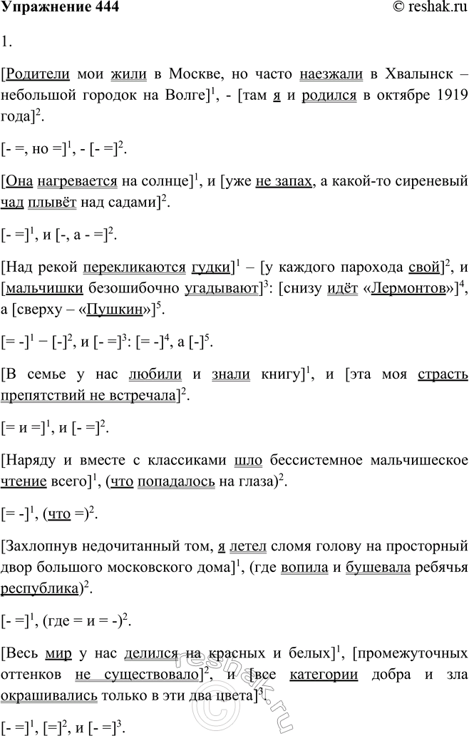 444. 1. Прочитайте отрывок из очерка поэта С. Наровчатова «О себе». Составьте схемы сложных предложений.
