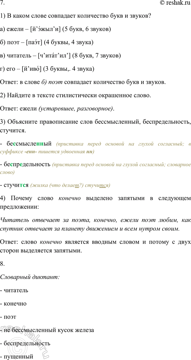 7. Сформулируйте несколько вопросов, заданий, направленных на повторение: 1) фонетики; 2) лексики; 3) орфографии; 4) пунктуации.