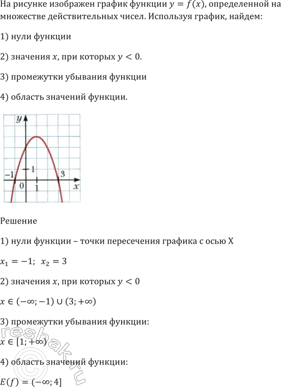 4) область значений функции.
