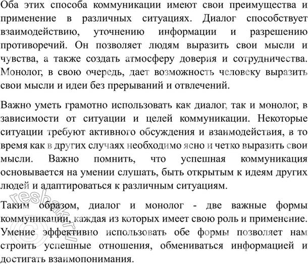 Таким образом, диалог и монолог - две важные формы коммуникации, каждая из которых имеет свою роль и применение. Умение эффективно использовать обе формы позволяет нам строить успешные отношения, обмениваться информацией и достигать взаимопонимания.