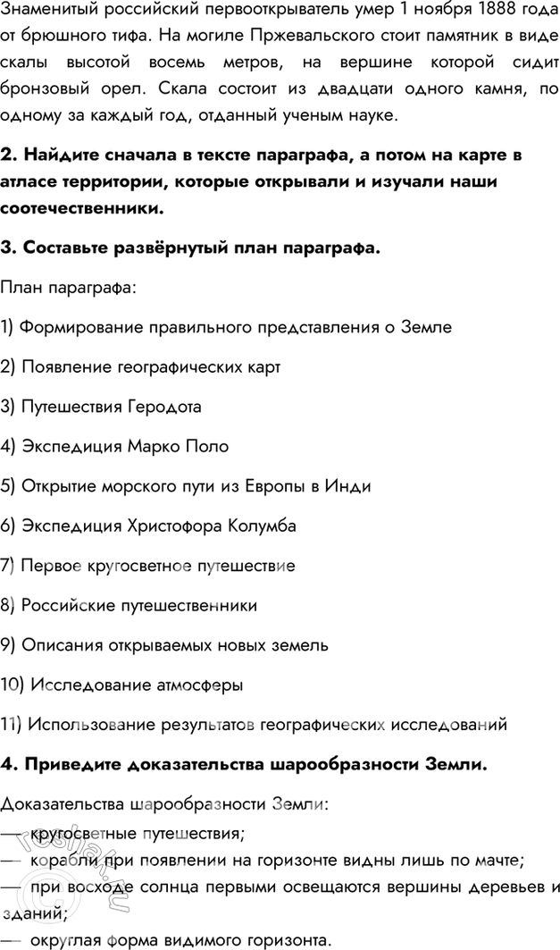 § 1. Открытие, изучение и преобразование Земли 1. Какую форму имеет Земля? Земля имеет форму шара. 2. Как древние люди представляли себе Землю?