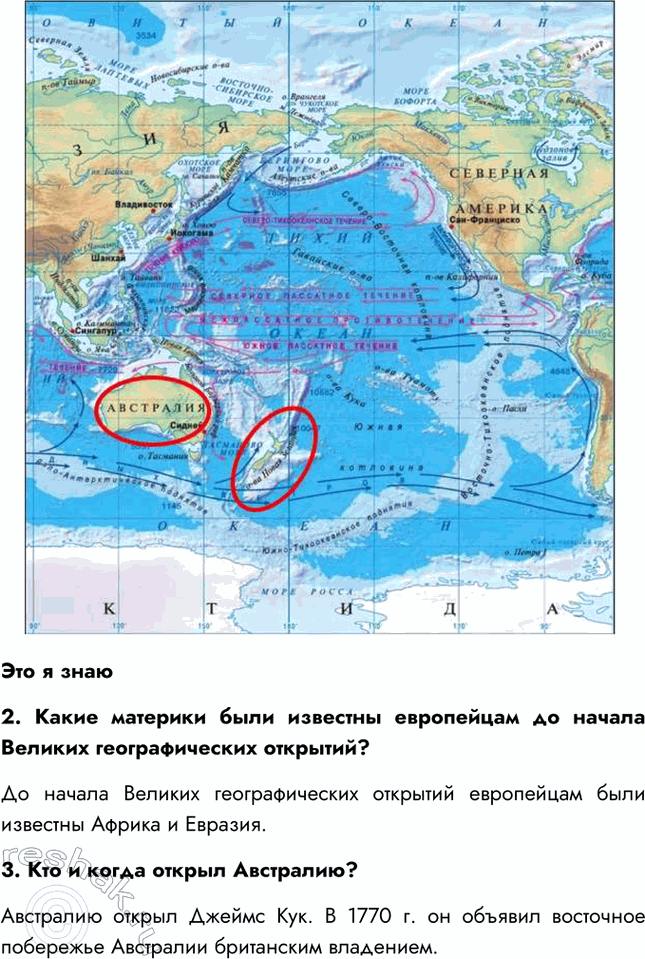 1. Найдите на карте океанов (с. 186–187 Приложения) пролив Дрейка, Баренцево море, Австралию, Новую Зеландию.