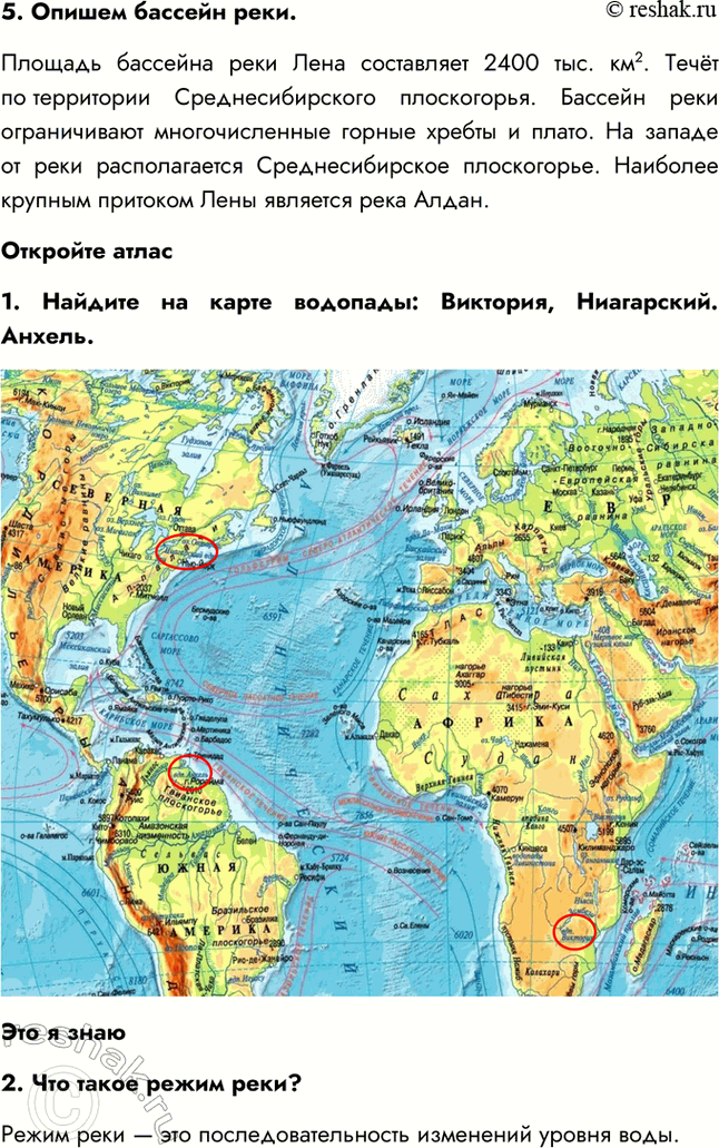 1. Найдите на карте водопады: Виктория, Ниагарский. Анхель.