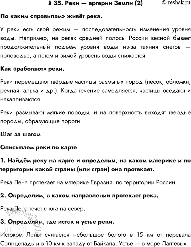 § 35. Реки — артерии Земли (2) По каким «правилам» живёт река. У реки есть свой режим — последовательность изменения уровня воды.
