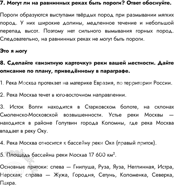 8. Сделайте «визитную карточку» реки вашей местности. Дайте описание по плану, приведённому в параграфе.