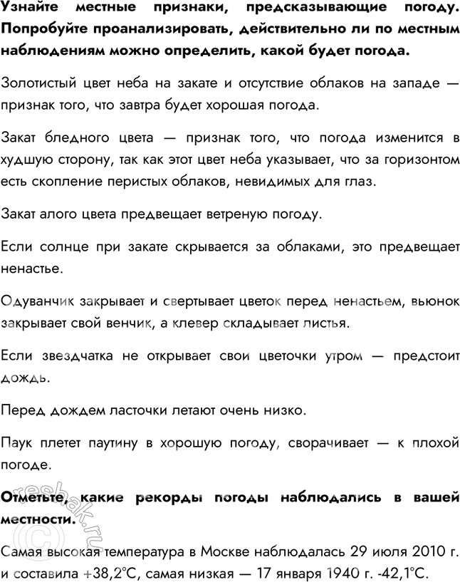 Вместе с родителями подготовьте доклад на тему «Погода и человек».