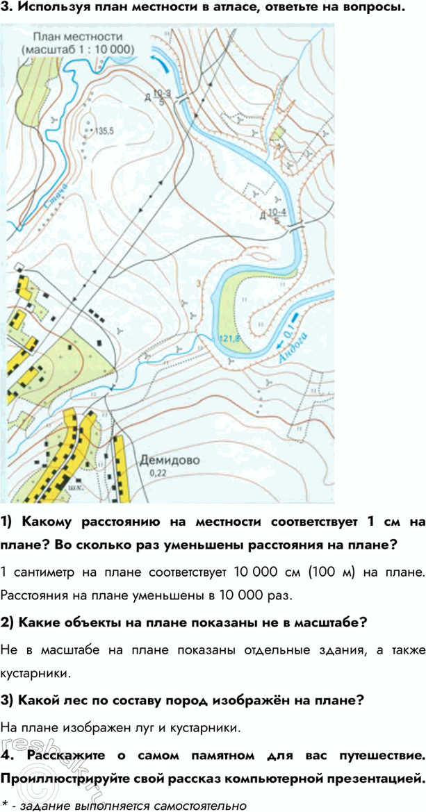 1. Что показывает масштаб: 1 : 500; 1 : 10 000; 1 : 2500? Какое расстояние на местности соответствует 1 см на планах с масштабом: 1 : 500; 1 : 10 000; 1 : 2500? Переведите это расстояние в метры.