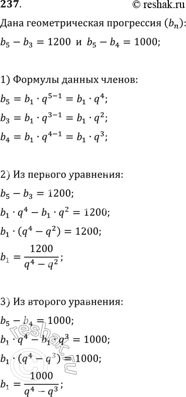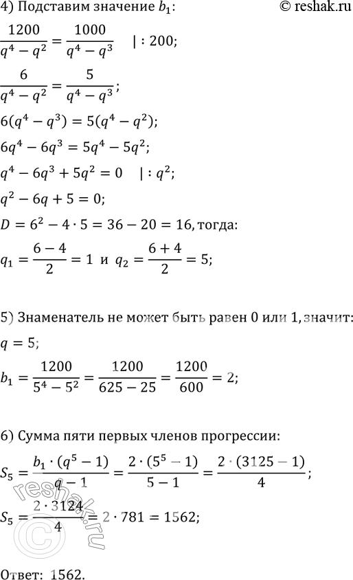 Разность пятого и третьего членов геометрической прогрессии равна 1200, а разность пятого и четвёртого членов равна 1000. Найдите сумму пяти первых членов прогрессии.