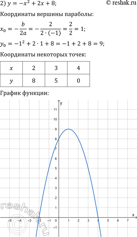 Постройте график функции: 1) у = х^2 + 6х + 5; 2) у = -х^2 + 2х + 8; 3) y = 1/2х^2 + х - 8;