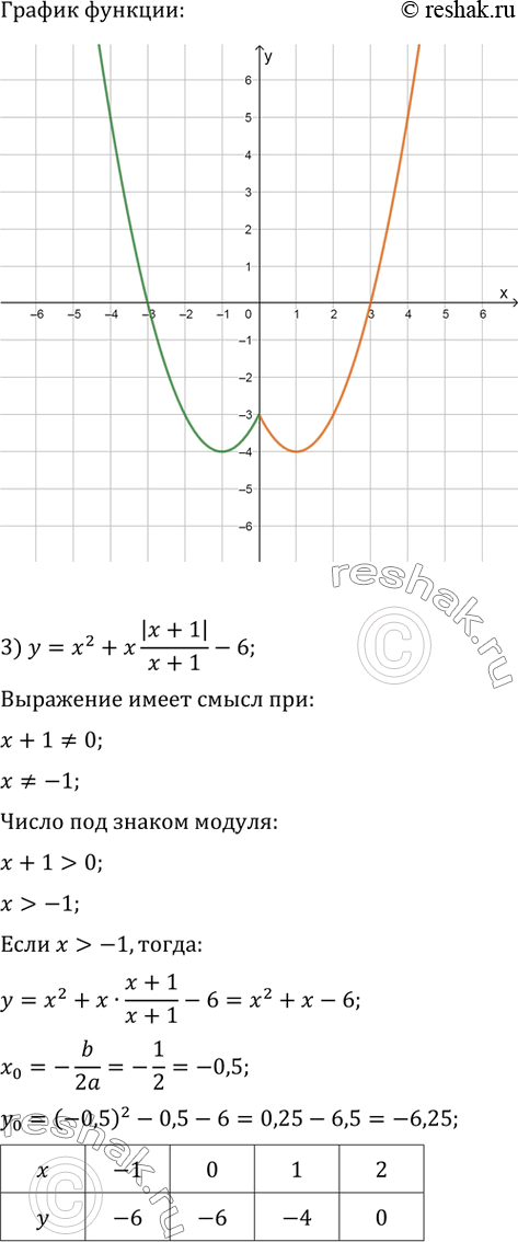Постройте график функции: 1) y= |x|/x (x^2-x-2); 2) y=x^2-2|x|-3; 3) y=x^2+x |x+1|/(x+1)-6; 4) y=x^2+2|x+1|-x-2;