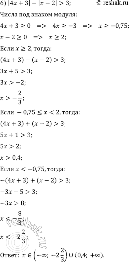 57. Решите неравенство: 1) |x+4|+2x>=7; 2) |x-3|-2x3) |x+5|+|x-3|4) |x+4|+|x-2|>6; 5) |x+3,5|-|x-2,5|6) |4x+3|-|х-2|>3;