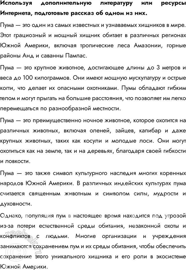 Пума — это крупное животное, достигающее длины до 3 метров и веса до 100 килограммов. Они имеют мощную мускулатуру и острые когти, что делает их опасными охотниками. Пумы обладают гибким телом и могут прыгать на большие расстояния, что позволяет им легко перемещаться по разнообразной местности.