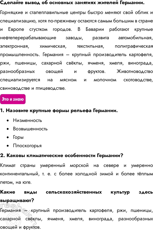 Ответ: а. Климат Германии морской на севере и умеренно континентальный, Гамбург стоит на реке Эльба. Германия занимает важное место в выпуске промышленной продукции, но не первое.