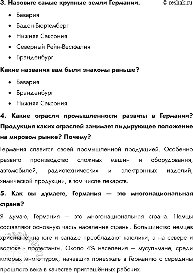 4. Какие отрасли промышленности развиты в Германии? Продукция каких отраслей занимает лидирующее положение на мировом рынке? Почему?