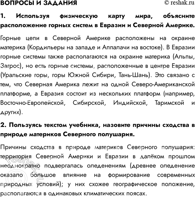 1. Используя физическую карту мира, объясните расположение горных систем в Евразии и Северной Америке.