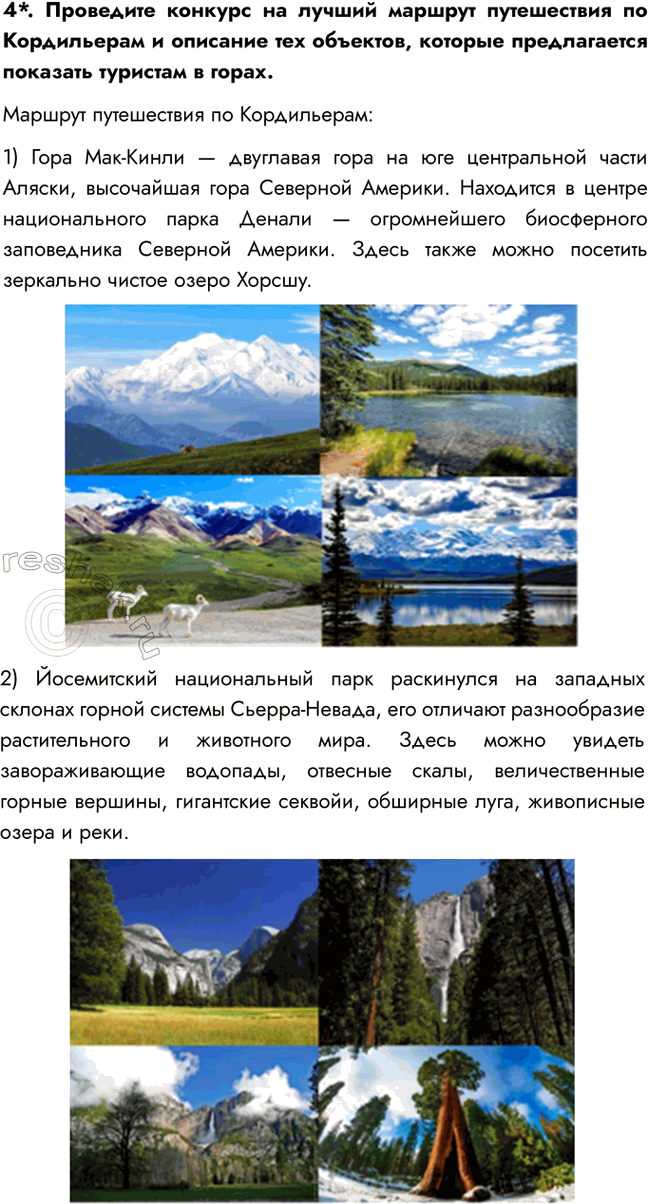 4*. Проведите конкурс на лучший маршрут путешествия по Кордильерам и описание тех объектов, которые предлагается показать туристам в горах.