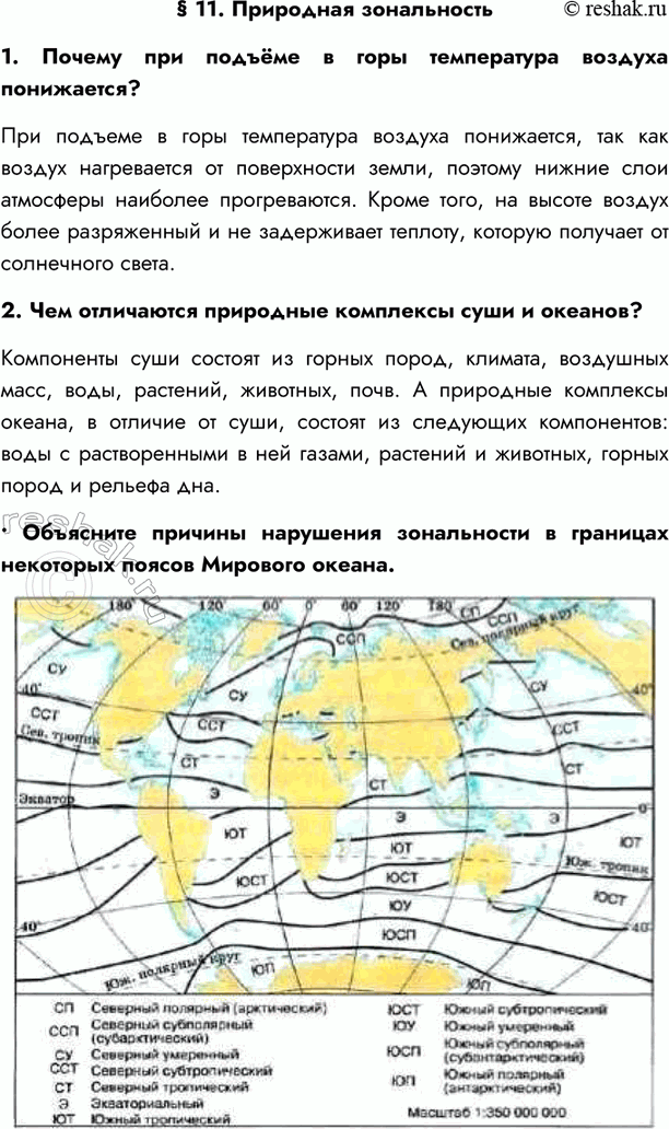 § 11. Природная зональность 1. Почему при подъёме в горы температура воздуха понижается? При подъеме в горы температура воздуха понижается, так как воздух нагревается от поверхности земли, поэтому нижние слои атмосферы наиболее прогреваются.