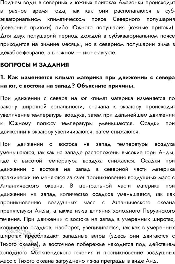 1. Как изменяется климат материка при движении с севера на юг, с востока на запад? Объясните причины.