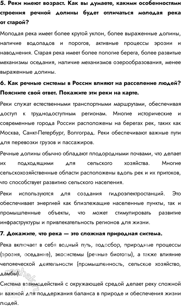 5. Реки имеют возраст. Как вы думаете, какими особенностями строения речной долины будет отличаться молодая река от старой?