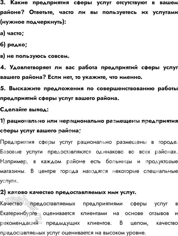 5. Выскажите предложения по совершенствованию работы предприятий сферы услуг вашего района.