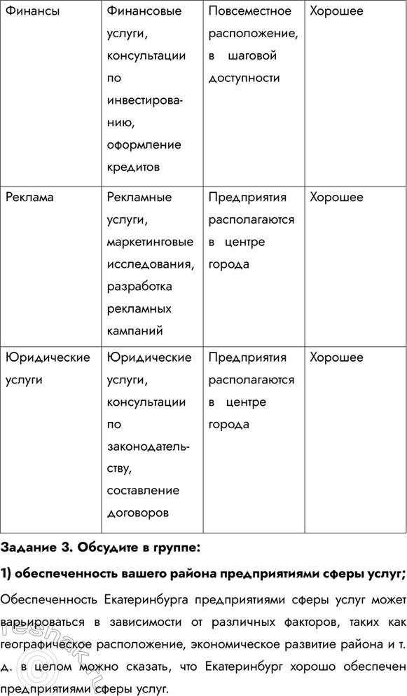 § 19. Учимся с «Полярной звездой» Задание 1. Выясните, какие отрасли образуют сферу услуг вашего района и какие потребности населения они удовлетворяют.
