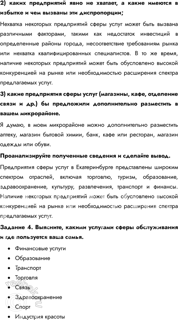 Задание 4. Выясните, какими услугами сферы обслуживания и где пользуется ваша семья.