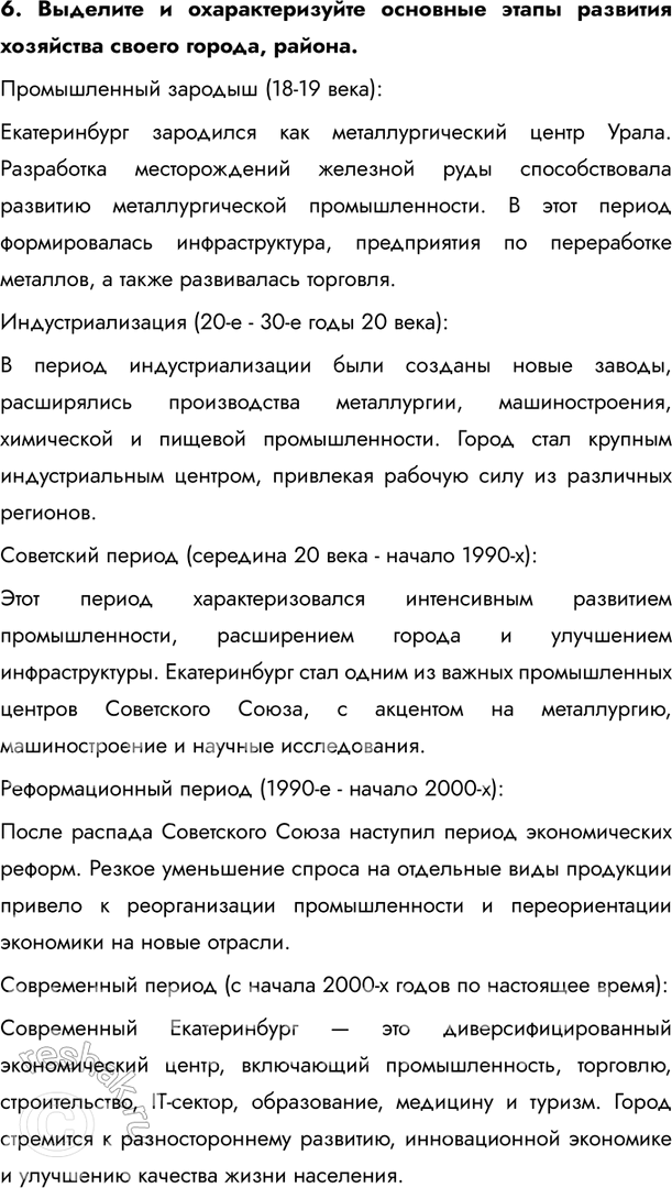 6. Выделите и охарактеризуйте основные этапы развития хозяйства своего города, района.
