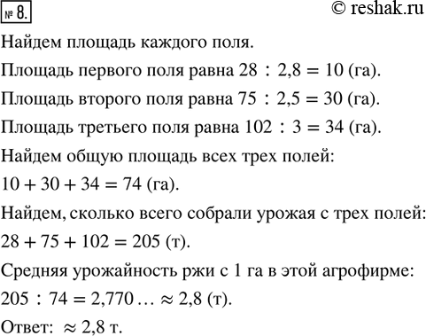 8. У агрофирмы имеются три поля, на которых выращивают рожь. В таблице приведены данные о собранном на трёх полях урожае ржи и её урожайности с 1 га каждого поля.