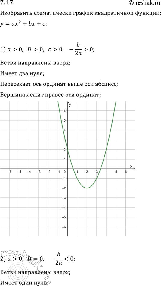 7.17. Пусть D — дискриминант квадратного трёхчлена ax^2+bx+c. Изобразите схематически график квадратичной функции y=ax^2+bx+c, если: