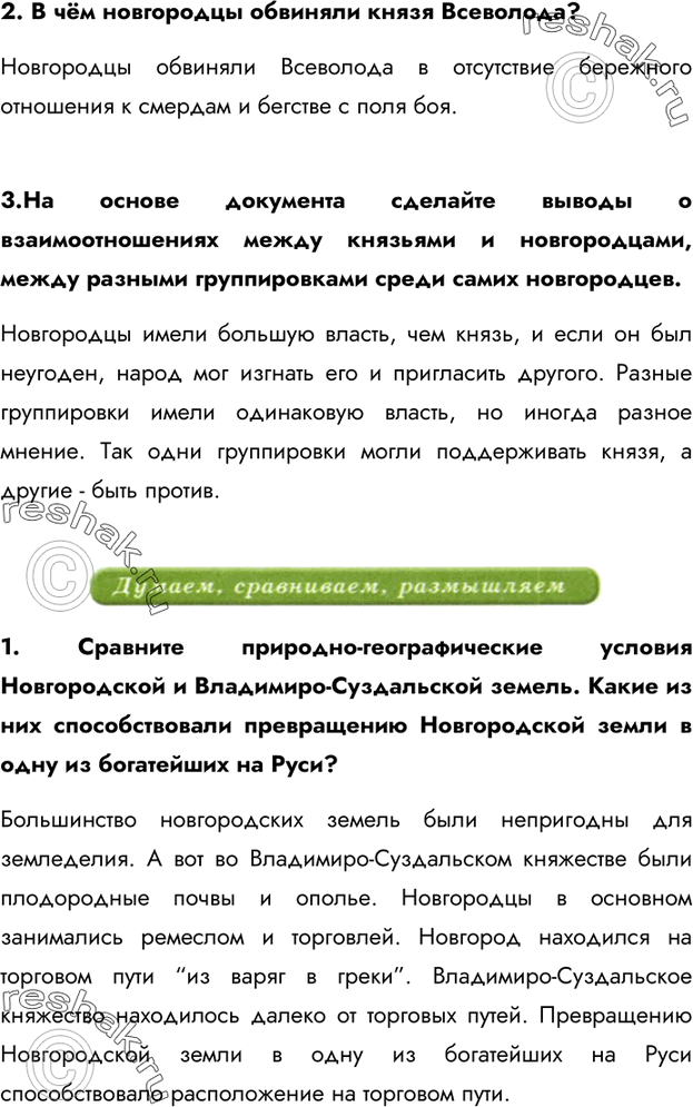 1. Сравните природно-географические условия Новгородской и Владимиро-Суздальской земель. Какие из них способствовали превращению Новгородской земли в одну из богатейших на Руси?