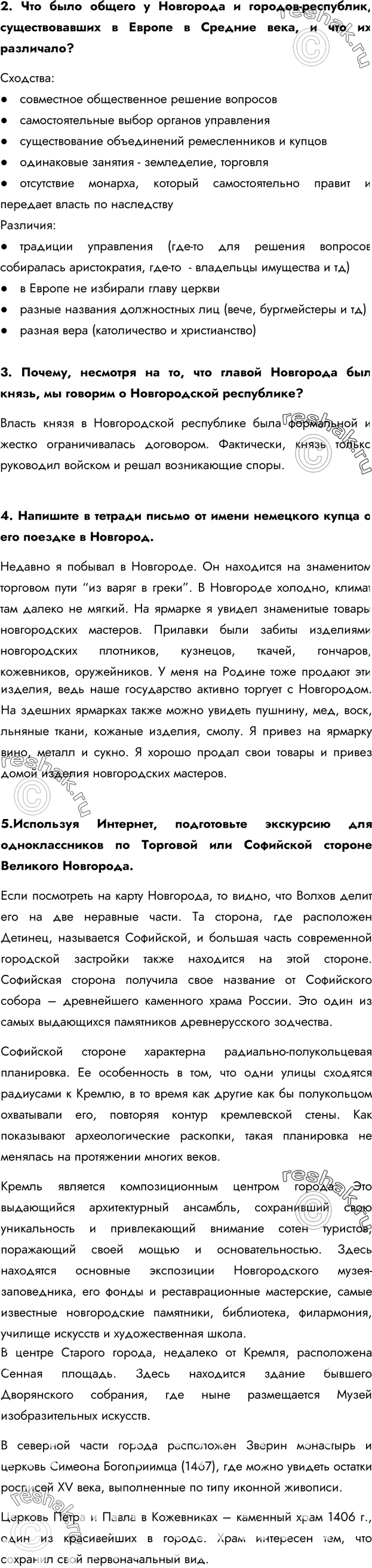 2. Что было общего у Новгорода и городов-республик, существовавших в Европе в Средние века, и что их различало?