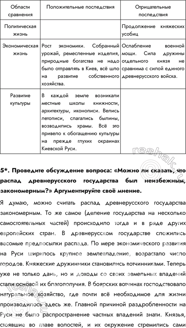 5*. Проведите обсуждение вопроса: «Можно ли сказать, что распад древнерусского государства был неизбежным, закономерным?» Аргументируйте своё мнение.