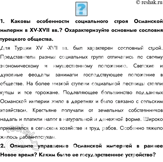 1. Каковы особенности социального строя Османской империи в XV-XVII вв.? Охарактеризуйте основные сословия турецкого общества.