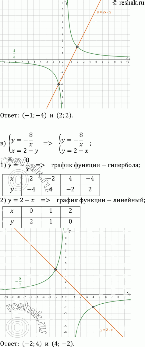 5.19 а) система y=-3/x, y+x=-2; б) система xy=4, 2x-y=2; в) система y=-8/x, x=2-y; г) система xy=6, 3x-2y=0.