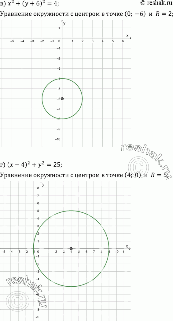 5.9. а) х2 + (у -З)2 = 36; б) (х + 2)2 + У2 = 9; в) x2 (y+ 6)2 = 4;