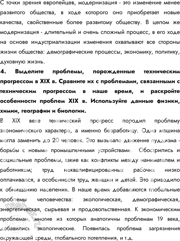 4. Выделите проблемы, порожденные техническим прогрессом в XIX в. Сравните их с проблемами, связанными с техническим прогрессом в наше время, и раскройте особенности проблем XIX в. Используйте данные физики, химии, географии и биологии.