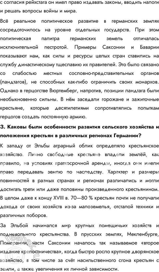 З. Каковы были особенности развития сельского хозяйства и положения крестьян в различных регионах Германии?