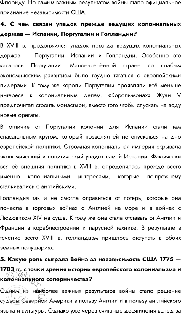 4. С чем связан упадок прежде ведущих колониальных держав — Испании, Португалии и Голландии?