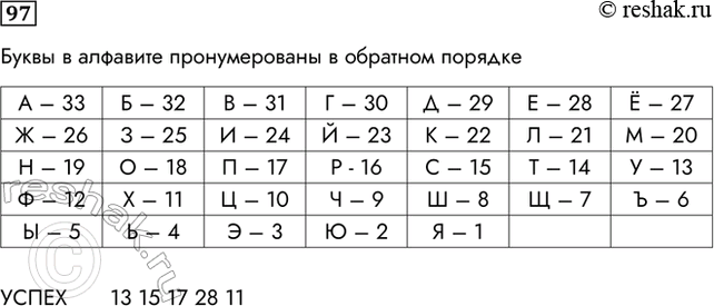 А – 33 Б – 32 В – 31 Г – 30 Д – 29 Е – 28 Ё – 27
