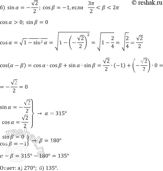 б) Найдите cos (а - b), если sin а = —v2/2, cos b = -1, 3pi/2