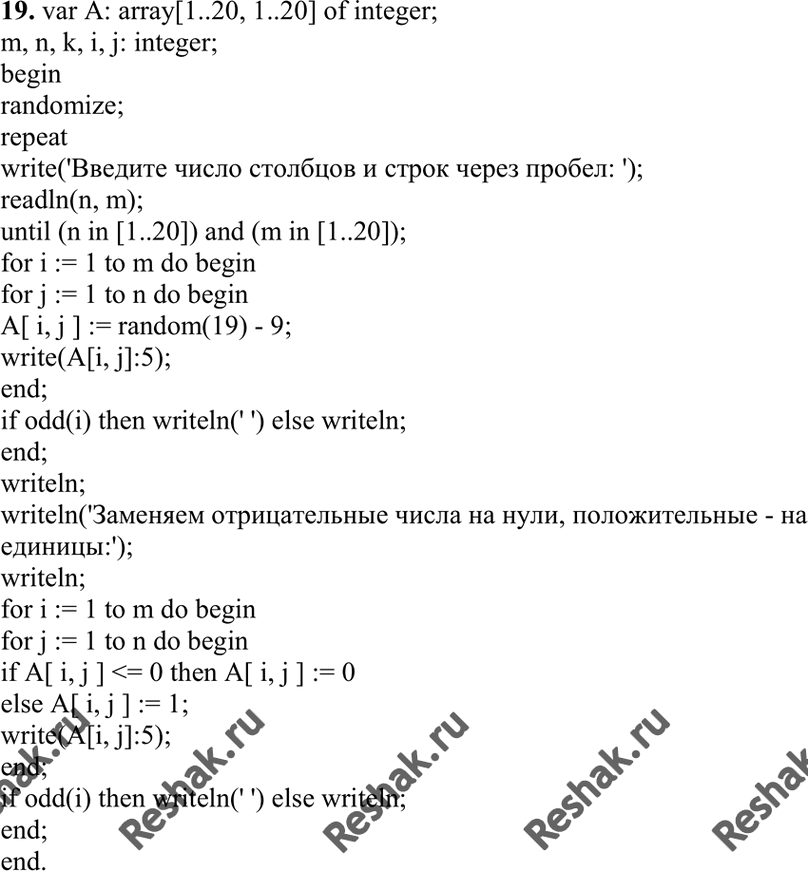 ![Решение задачи: 19. Дана квадратная матрица A[N, N], Записать на место отрицательных элементов матрицы нули, а на место положительных — единицы. Вывести на печать нижнюю треугольную матрицу в общепринятом виде.](solutions/informatika/10/408/2063957-1-19.png)