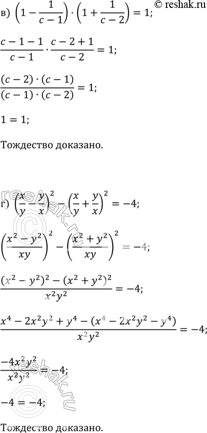 г) (x/y - y/x)^2 - (x/y + y/x)^2 = -4.