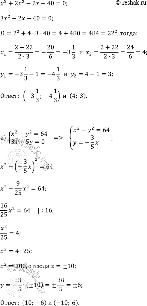 д) x - y = 1 и x^2 + 2xy = 40;
