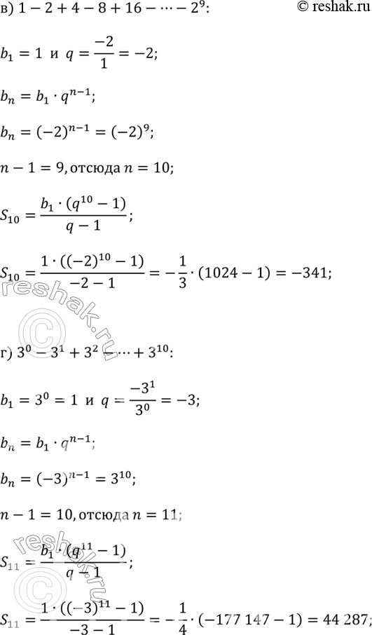 в) 1 - 2 + 4 - 8 + 16 - ... - 2^9;