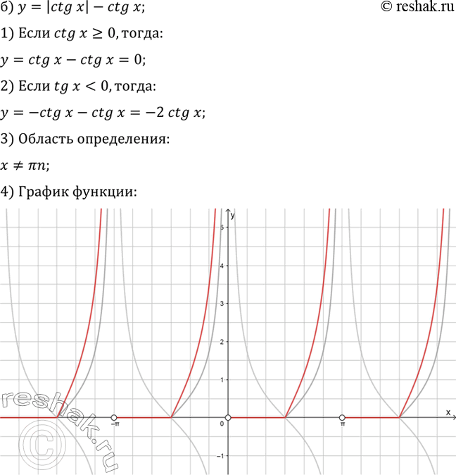 Постройте график функции:а) у = tg x + |tg х|; б) у = |ctg x| - ctg x.