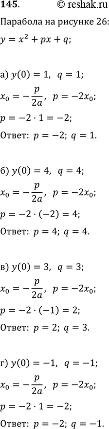 145. Найти значения р и q квадратичной функции у= х2 +рх + у, используя её график: 1) на рисунке 26, a;