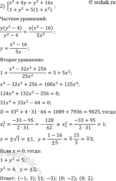 368. 1) система (x-y)(x2+y2)=65, (x+y)(x2-y2)=5; 2) система x3+4y=y3+16x, 1+y2=5(1+x2).