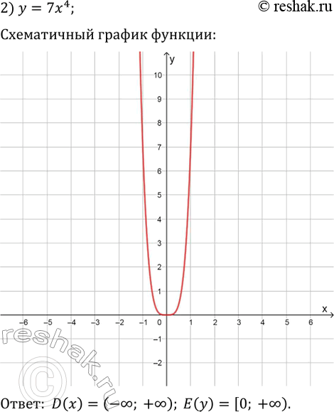 635. Изобразить схематически график функции, указать её область определения и множество значений: 1) y=x^9 2) y=7x^4 3) y=vx 4) y=
