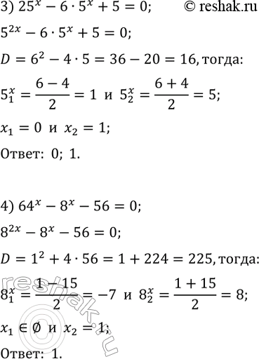 684. 1) 9^x-4*3^x+3=0 2) 16^x-17*4^x+16=0 3) 25^x-6*5^x+5=0 4)64^x-8^x-56=0