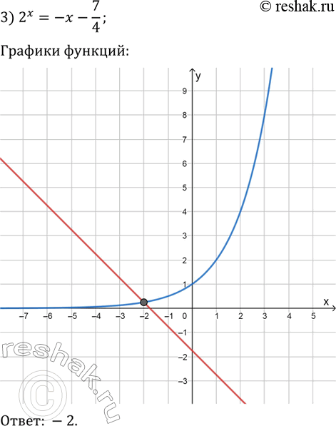 Решить графически уравнение: 1) (1/3)^x=x+1 2) (1/2)^x=x-1/2 3) 2^x=-x-7/4 4) 3^x=11-x